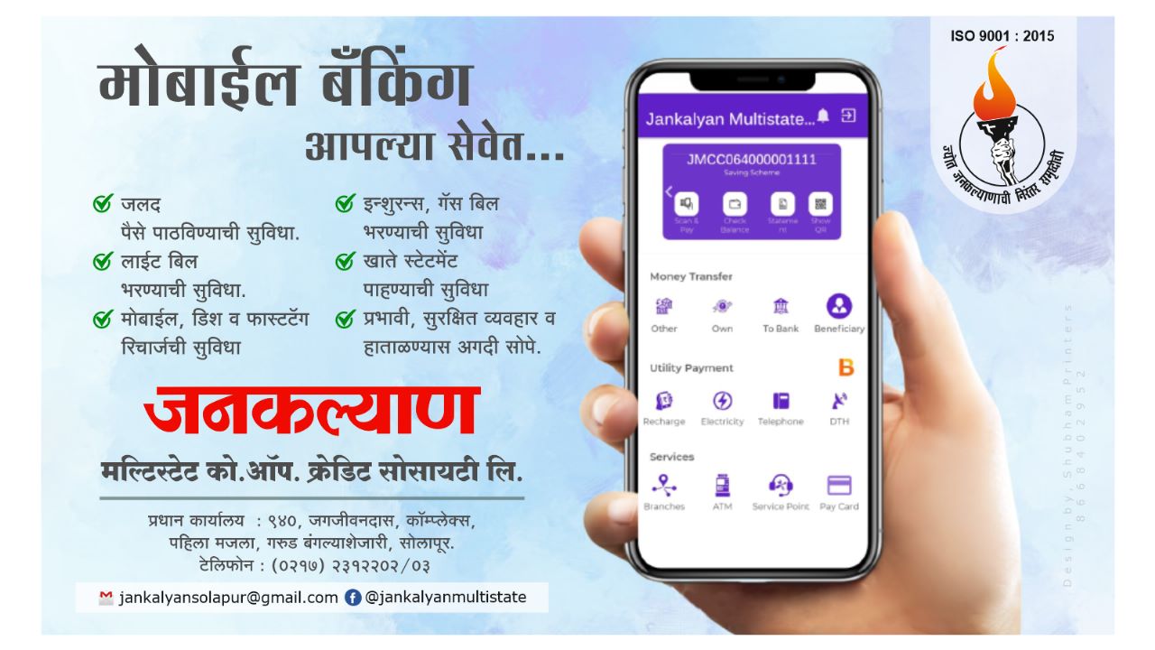 Jankalyan Bank also provides Mobile banking and net banking services.